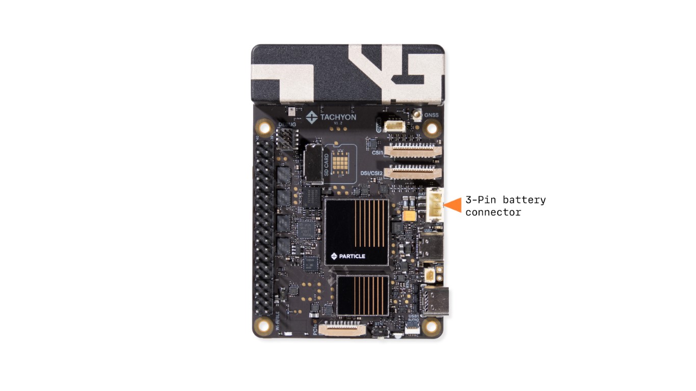 Tachyon supports 3.7V LiPo batteries with a 3-pin JST-PH connector.
